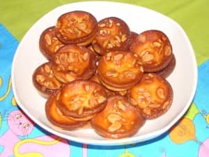 - Coloca-se por cima de cada uma, uma pequena porção de amendoa triturada.